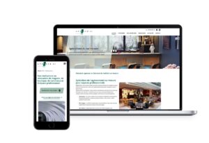 Site d’un spécialiste de l’agencement sur mesure pour les espaces professionnels, mise en avant des réalisations et géolocalisation