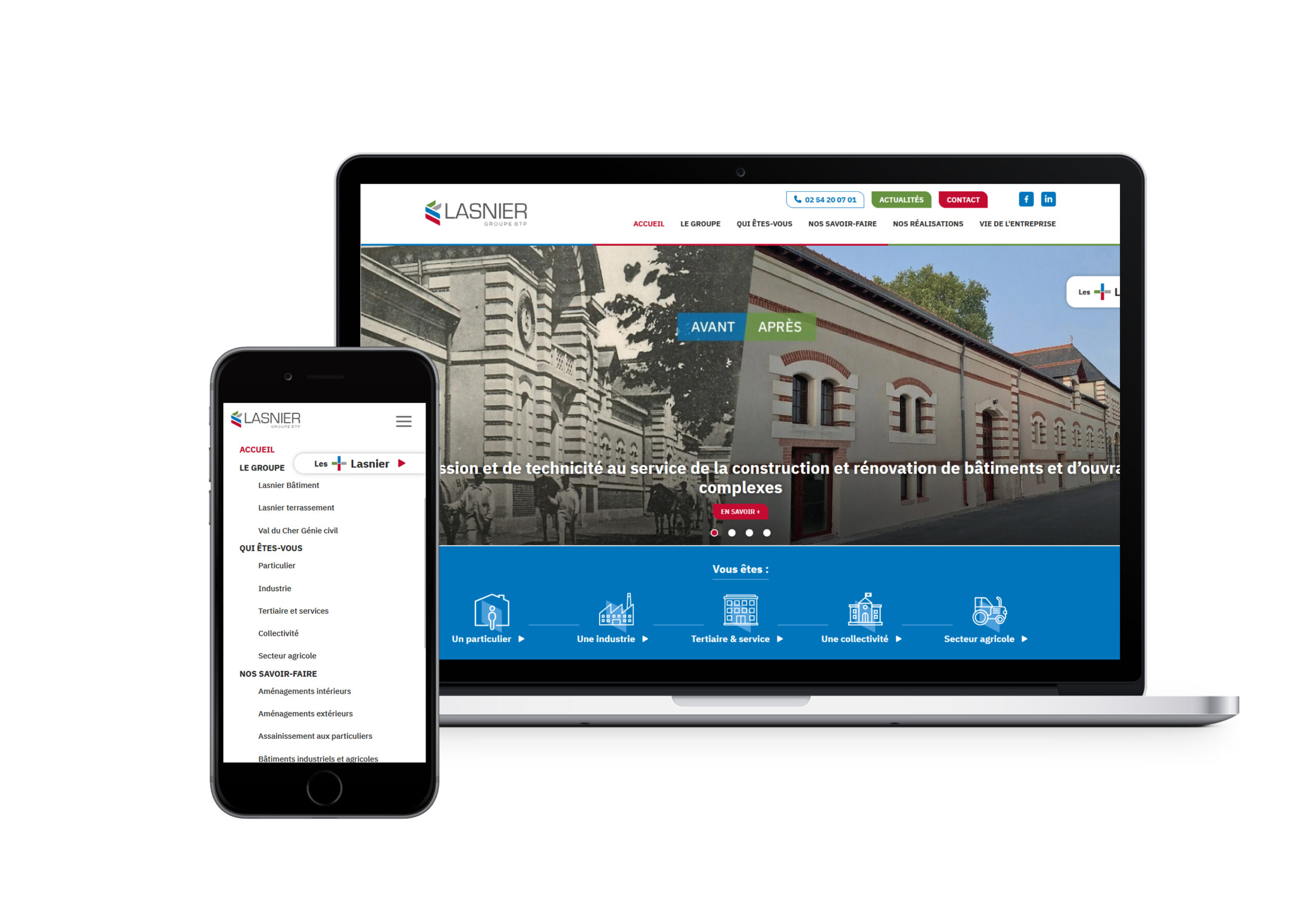 Création du site vitrine www.lasnierbtp.fr, groupe du bâtiment qui fête ses 100 ans en 2023.